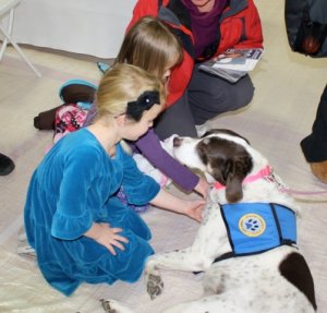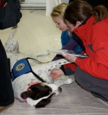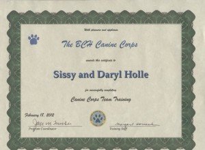 For the short time I have been working with Tilda at this endeavor, I have already learned that these dogs are very, very special once they understand what it is they are supposed to be doing. The amazing thing is that therapy dogs like Tilda do “get it”. Most times they are very low key and just want to see their people friends at the hospital. All they want is a warm massage rub, a loving pet or two, maybe a treat if Daddy allows. But once in a while, a “happening” comes about and it is INSTANT and it all happens so fast that it really jerks at the heart strings. The key to the experience is to just “allow it to happen” and be ready for it at every potential visit. I really have to concentrate and watch her moves carefully as she gives me the clues when its about to happen. The “drive” that Tilda displays during these events is very purposeful and most intentional and there is nothing casual about it at all. That is my cue to “shut up and watch carefully” as something very special is taking place. That is the feeling I get each time I see one of these events. In this case, Grandma was way across the room, nearly the farthest person from the door, but Tilda went straight for her and was staring her down with intent and kept pulling/scooting towards the lady. The lady had her head down with her face in her hands so something went on there that cut through all that emotion and pulled it back towards the center. I don’t know what that is, but I think the volunteer at the front desk was right; it may have been heaven sent for those people on that particular day and moment for those folks. I also know that one cannot “train” a dog to do this, they pick this up on their own if its in their nature to do so.